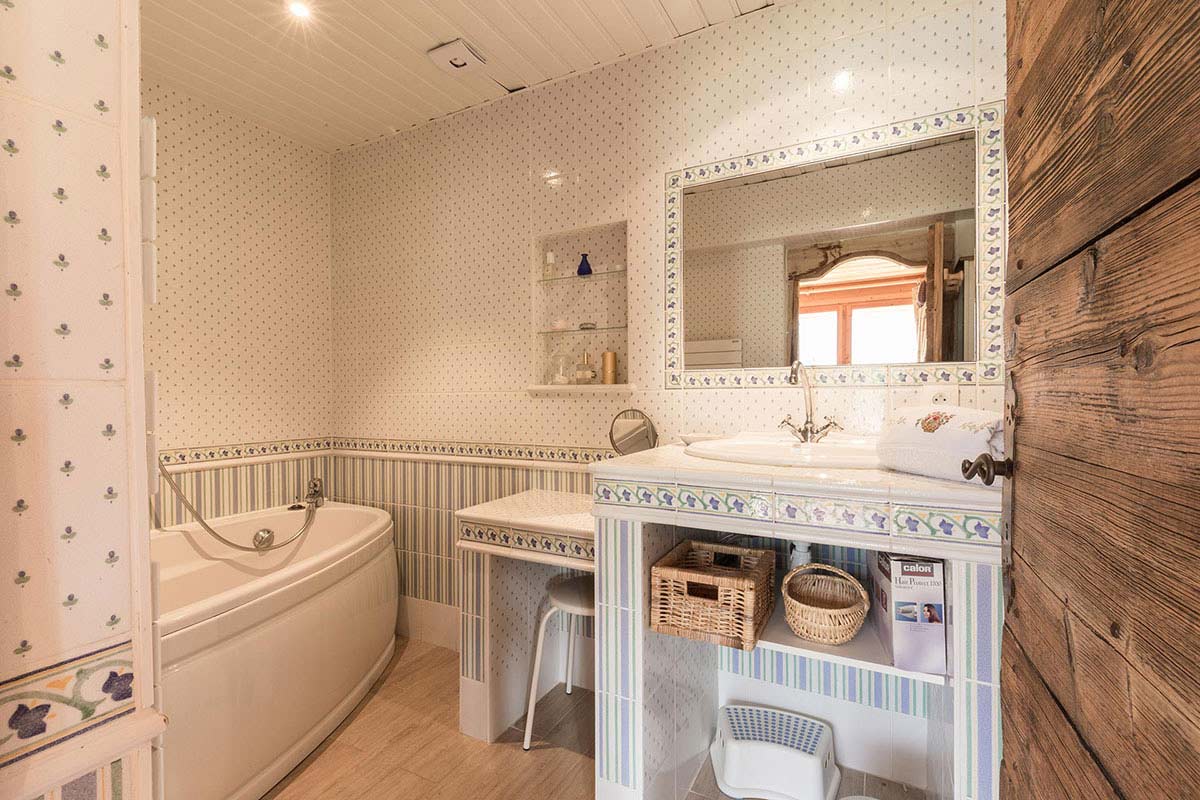 SANITAIRES : une grande et belle salle de bain avec baignoire et coiffeuse, WC séparé avec lavabo